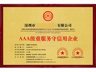 AAA級重服務守信用企業認證是對企業在服務方面的高度認可,表示該企業在服務質量、客戶滿意度、售后服務等方面表現出色,并且在經營過程中遵守誠信原則,具備良好的商業信譽。
